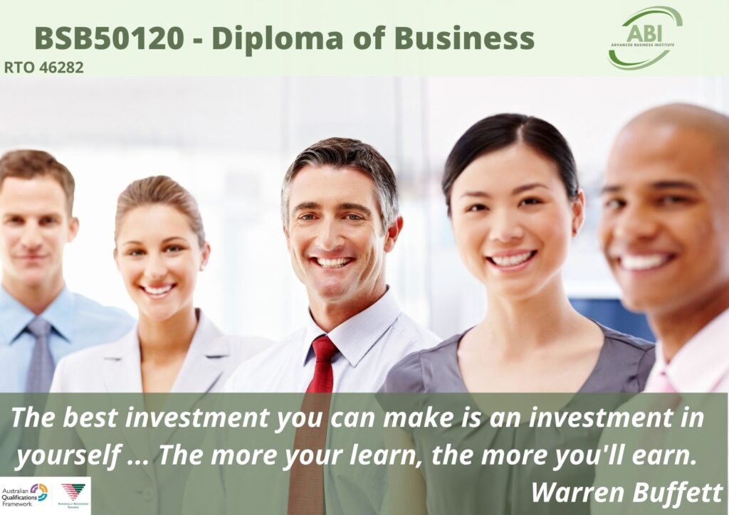The BSB50120 Diploma of Business online gives you practical business skills for management and leadership roles. You gain competence in finance, resources, communication and critical thinking.